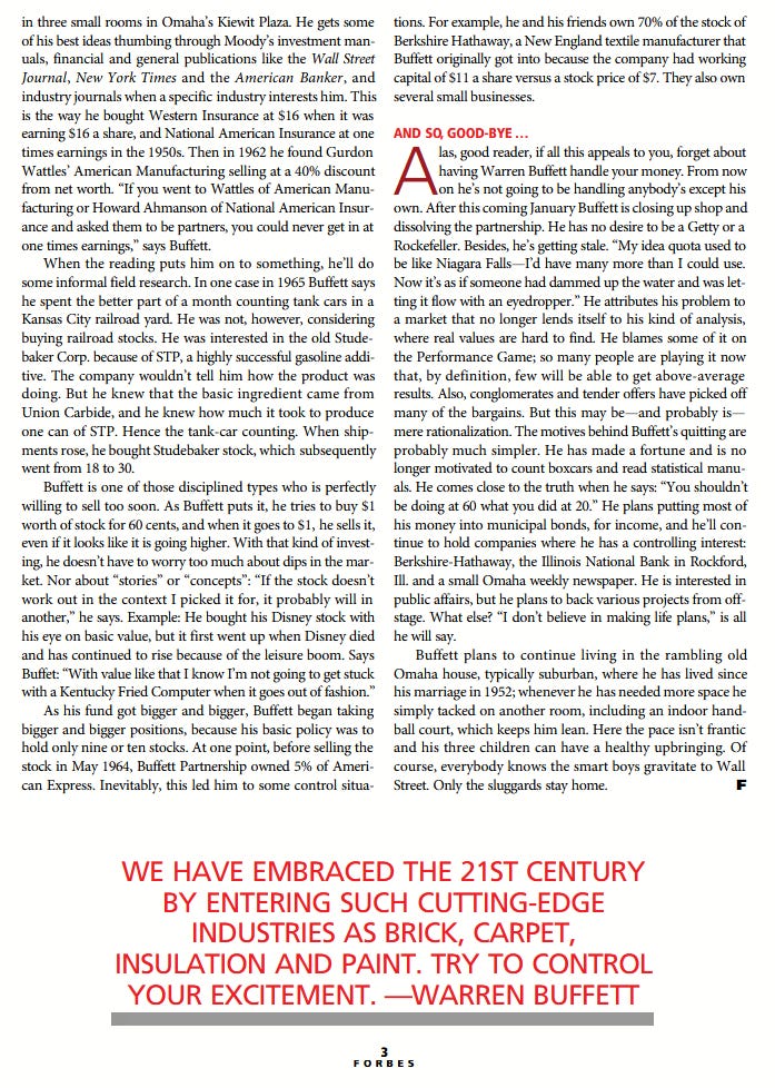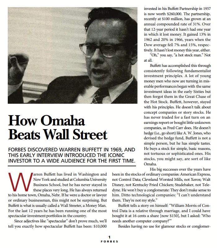 Forbes discovered Warren Buffett in 1969, and this early interview introduced him to a wide audience for the first time.