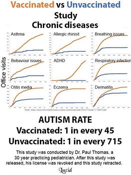 Study from Paul Thomas shows unequivocally that Vaccinated babies see more disease and sickness than Unvaccinated.