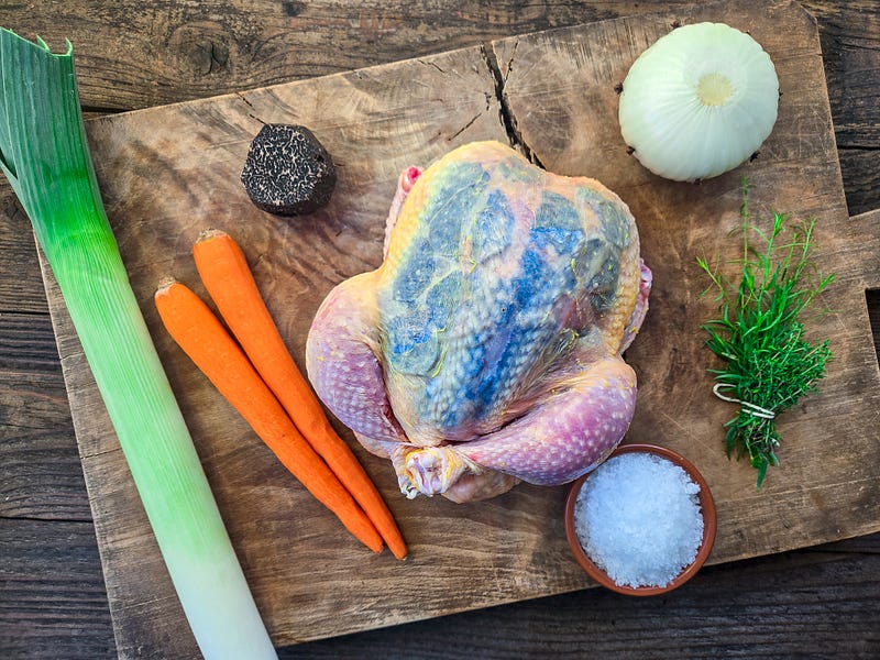 The truffles came from Les Pastras in Cadenet, and sliding them into place requires a certain quietude, a slow ritual of tucking the aromatic discs into their silk-like pockets until the bird is properly adorned. It is the kind of task that rewards unhurried hands and a willingness to treat the whole affair as something closer to ceremony than cooking.