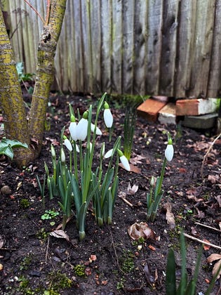 Such a joy to spot these snowdrops emerging in the garden today. Flowering in between my children’s January birthdays, they’ve become a special talisman for me, so much so that I have a pair of snowdrops tattooed on my inner forearm!
