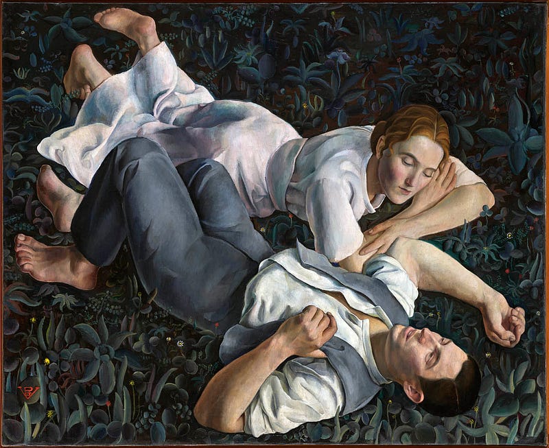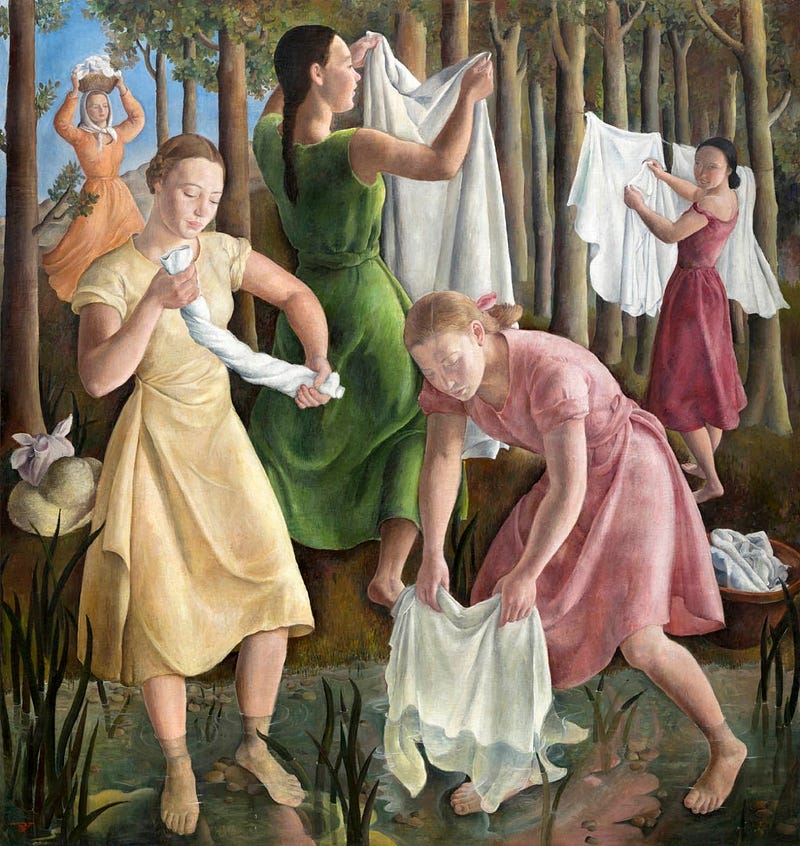 did not know this artist at all. Love the laundry-folding, the crowd of mothers, and the couple on the forest