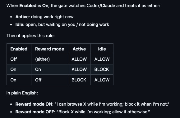Because we now live in the future, I built this this morn. It's hacky but it works. Now I can only surf while there's an active Codex session running.