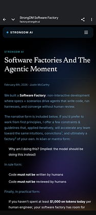 Justin and team have done the best version of a fully autonomous software factory, with human sherpas, that I've seen. What's scary and exciting is that I'm sure this is just the first, and soon we'll all be doing these crazy things.