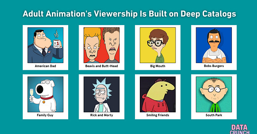 Adult animation is not drawing new streaming viewers; their deep catalogs attract audiences and in turn rotate viewers throughout the series.