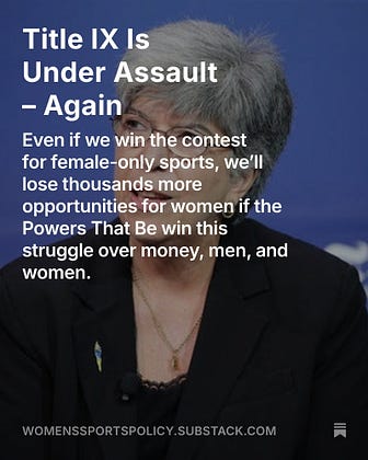 Action Alert for Women’s Sports: Deadline, April 10. Threats to Title IX are even worse than threats to the female-only category. Please consider sending a brief email by April 10. Thanks!