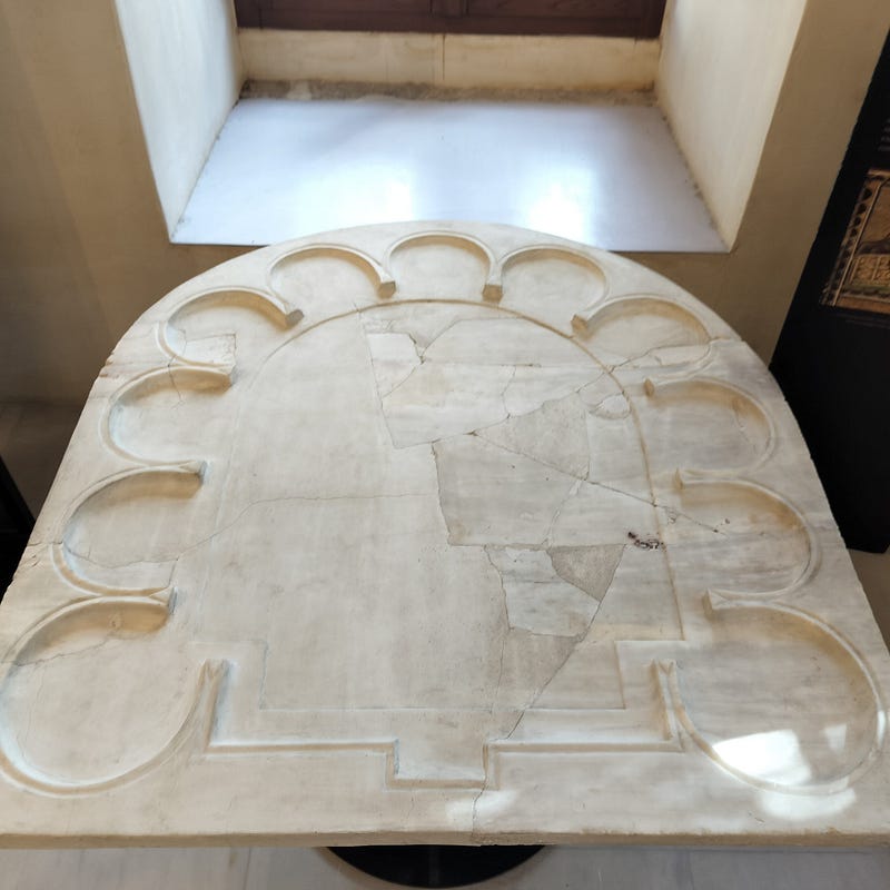 📸 1. Marble horseshoe-shaped table with eleven semicircular depressions, likely intended for the placement of food offerings. Horseshoe-shaped tables have been associated with the so-called agapai, congregations during which communal meals were offered in the early Christian period. From the exhibition “In the Footsteps of Apostle Paul” at the Fethiye Mosque in Athens.