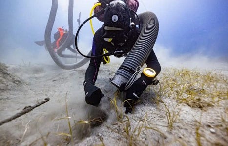 Marine archaeologists during the 2025 excavation season recovered a new Parthenon fragment from this 224-year-old wreckage. The discovery is a marble "gutta"—a small, drop-shaped architectural ornament—whose dimensions precisely match the known measurements of the Parthenon's decorative elements.