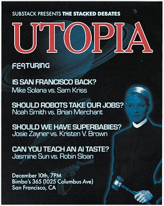 TONIGHT ~7:30pm PT we're livestreaming the Utopia Debates in San Francisco featuring…