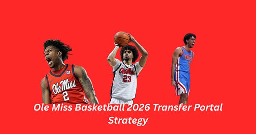 New, something different from me: Ole Miss’ basketball season ended with a tough regular season but strong SEC tournament performance. I put together a strategy with how they should attack the transfer portal — objectives, SWOT analysis, and key pieces to retain: