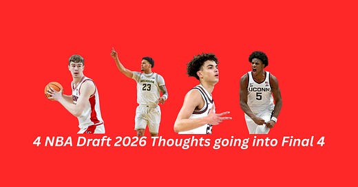 I gather my thoughts on the remaining teams from last weekend’s Sweet 16/Elite 8 play with 4 takes related to the 2026 NBA Draft