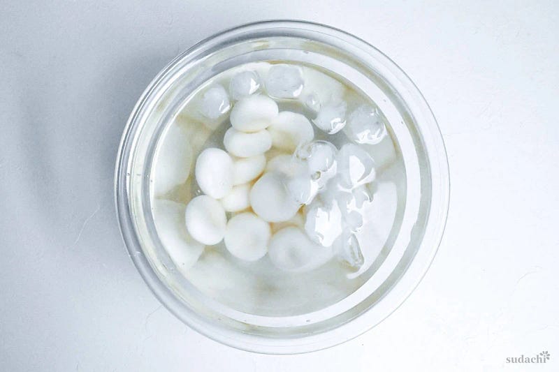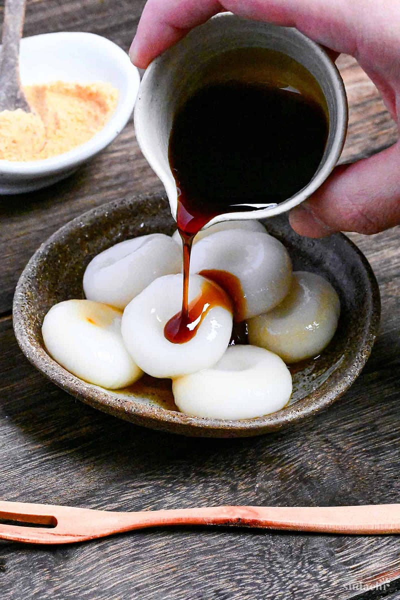 Shiratama Dango is a small chewy mochi ball typically served with Japanese desserts. You can enjoy them with fruits, ice cream or simply drizzled with syrup!