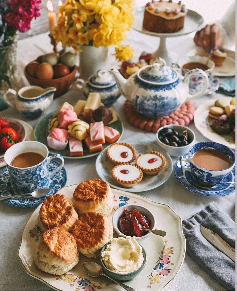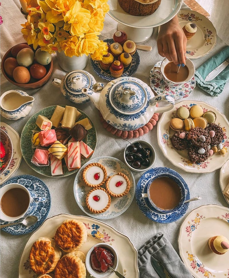 I used to set the table like this for the kids at Easter time.. Daffodils gathered in thick yellow handfuls, pulled out the nice teapots, tiny cakes and sugared things arranged to delight. It wasn’t about the food, not really, but the feeling.. something good was happening. I think now how small rituals like this hold their shape in my memory.. their hands reaching in and how, without realizing it, we were practicing wonder in the ordinary days.