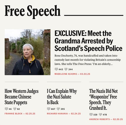 Still not a word either for or against the detention and deportation of Mahmoud Khalil at the FP, which champions free speech. One news story; one early, ill-informed video by a staffer in favor of it. Nothing else.