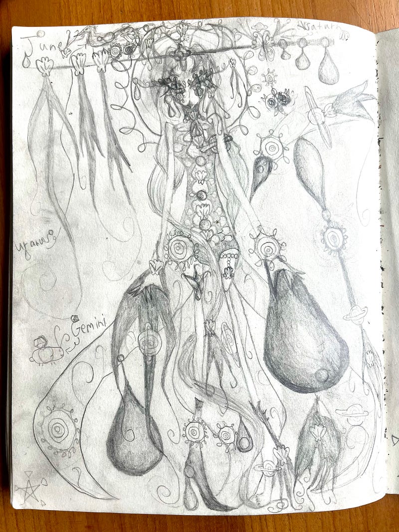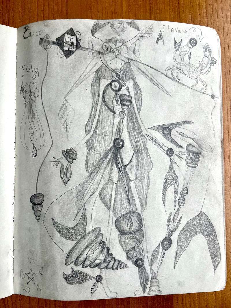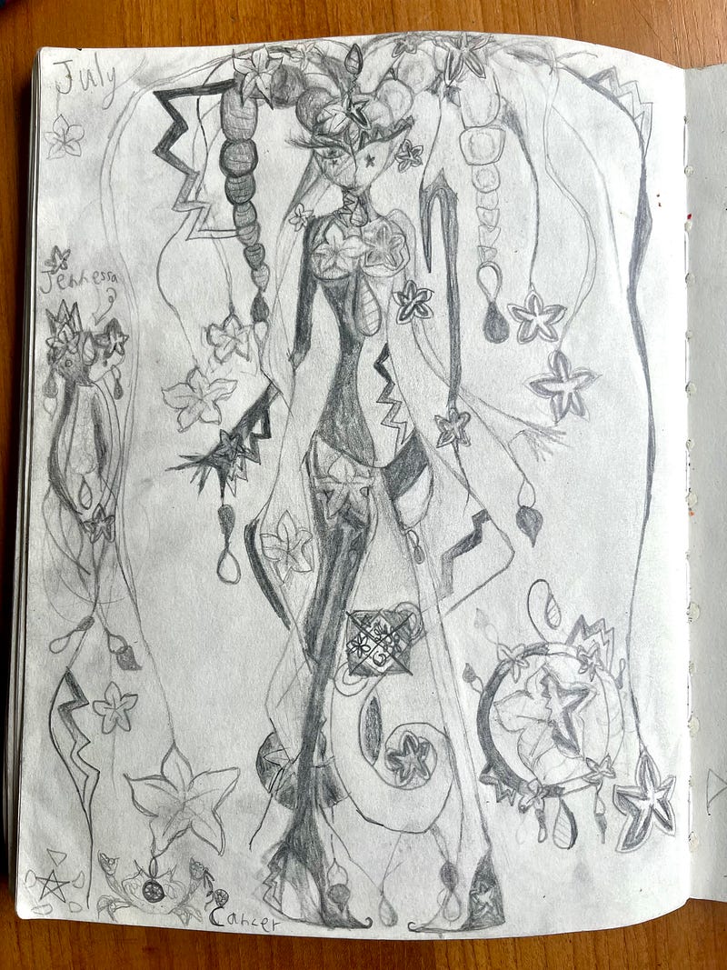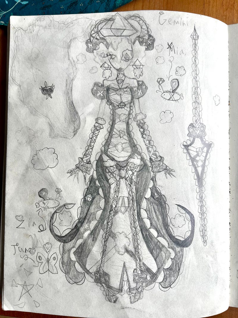 My daughter, who is proudly autistic, creates these characters often based on elements or zodiac signs. She assigns lore to them, embodies them, becomes them. With her blessing, I’m sharing some of these creations.
