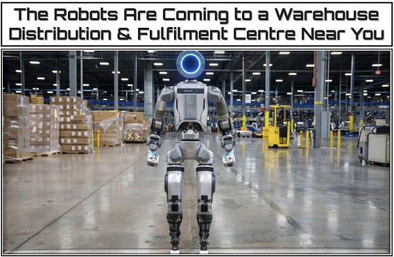 Imagine walking into a warehouse distribution or fulfillment center in 2028. Towering racks of full of boxes, all shapes an sizes, fleets of tiny wheeled bots scurrying between aisles, and now six-foot humanoid workers shoulder-to-shoulder with humans, lifting, climbing, and finishing the repetitive heavy work that used to break backs.