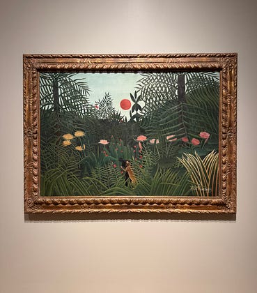 Went to Philly to see the Rousseau show at the Barnes foundation. I had this as a poster back in my poster days so it was lovely to see it in person. He painted these jungle scenes partly because he thought they’d be popular but much of his work was ridiculed at the time. Great show!