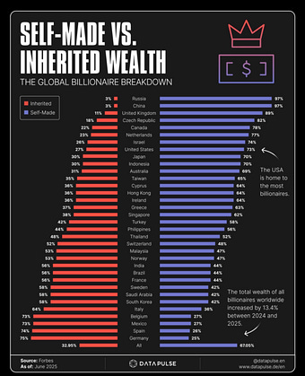 Germany’s billionaires are 75% inherited. Russia and China’s are 97% self-made. The US sits at 73% self-made.