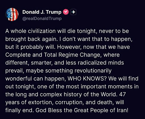 I will never forgive the people who voted for this, enabled this, excused this, or sat in cowardly silence while it happened. This is not politics. This is moral rot. This is what it looks like when a sociopath is handed power and half a country calls it strength. He speaks about death, regime change, and the destruction of human lives l…