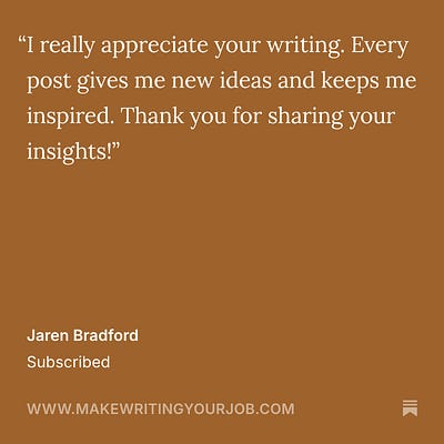 Thanks for becoming a paid subscriber of our writing job board + community at ✍️ makewritingyourjob.com Jeren! Glad you’re finding inspiration from our posts :)