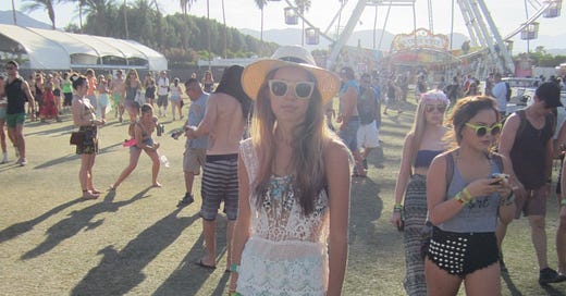 Baby me at Coachella (photos 1 and 2). When I camped and was then abandoned in a driveway in Indio at 3am by my ride home (photos 3)!