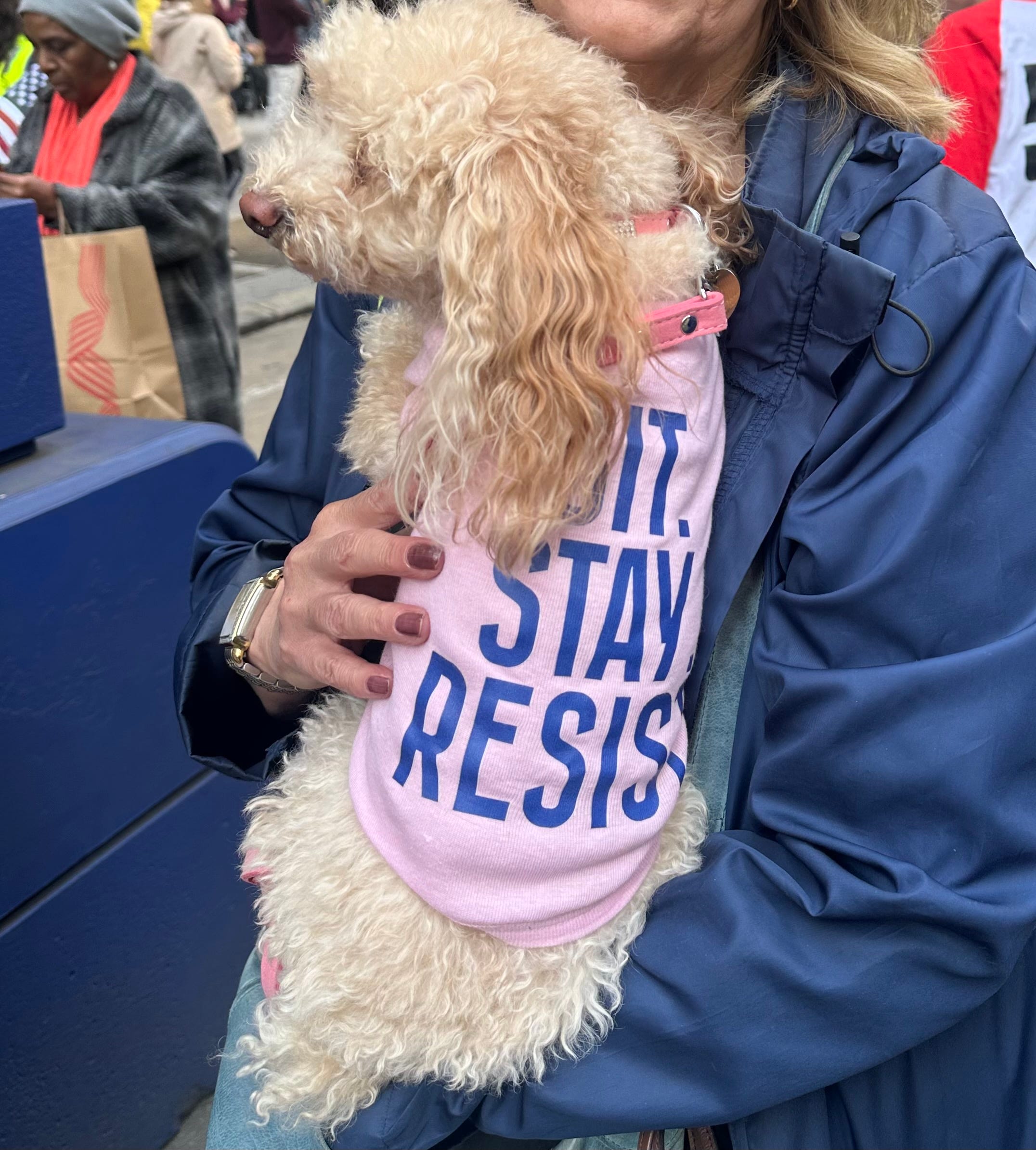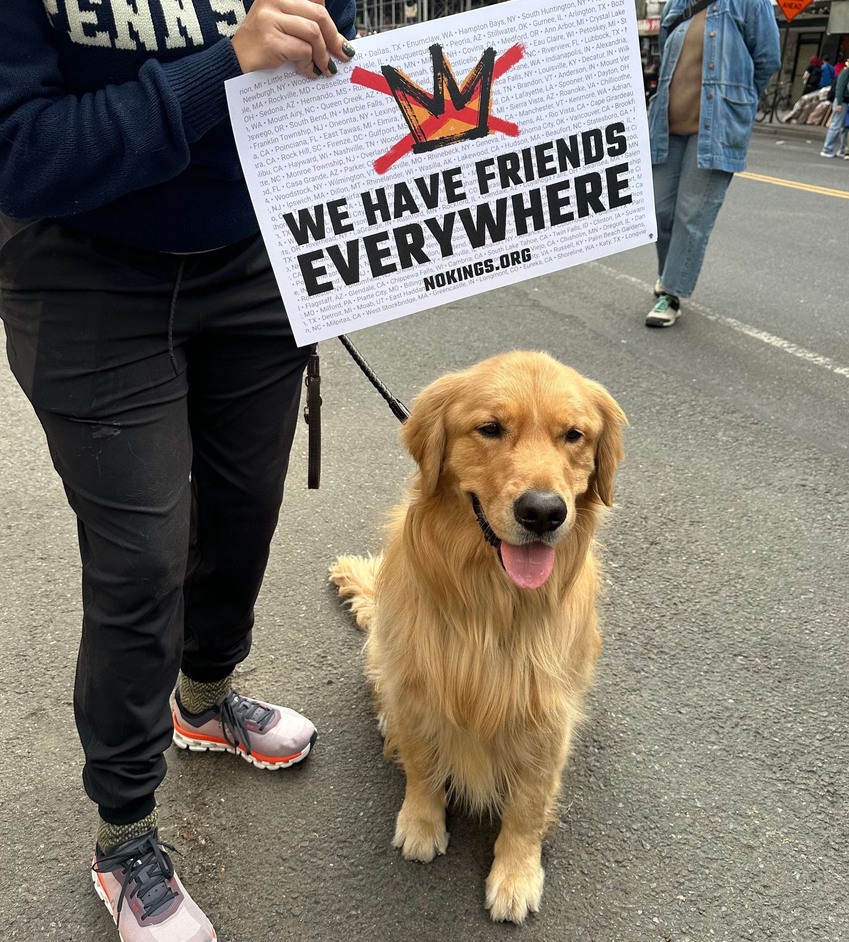 NYC No Kings March — the doggos are out supporting their humans♥️ Yes, Andor-resistance code “we have friends everywhere” Thank you Tony Gilroy🙏♥️