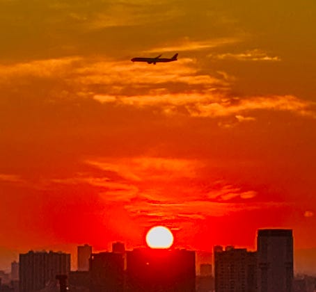 I caught an aircraft just before landing, its body briefly holding the last light. I wondered what the passengers saw from inside.