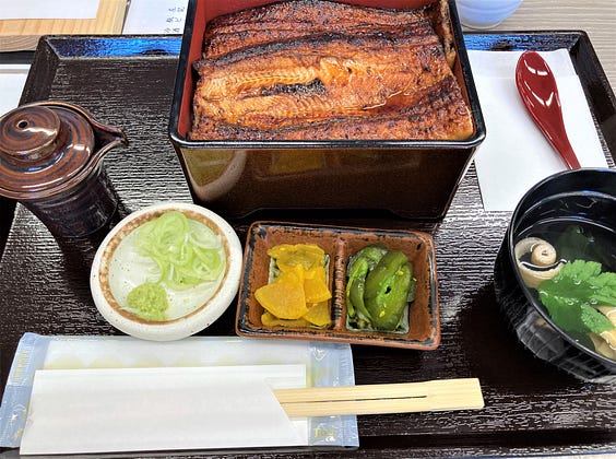 The Japanese customarily eat eel to regain energy and stamina and to alleviate suffering from the summer heat on the day known as the Midsummer Day of the Ox, Doyo-no-ushi-no-hi, which traditionally falls around the end of July on the ancient Japanese calendar. Those specific summer days, doyo, last for a couple of weeks before the first day of summer. The Midsummer Day of the Ox occurs around July 20, and this year's designated day is today, July 24.