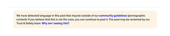I distribute my newsletter on Substack and Patreon. Only on Patreon am I hit with these “community guidelines” warnings. How is any tech journalist supposed to build an audience online when the topics we write about like porn, violence, politics, etc are deemed “unsafe”?