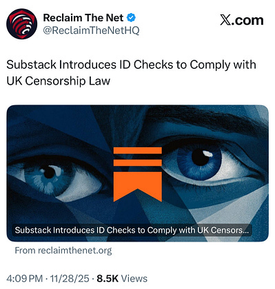 Substack could fight this obscene censorship law and all the other censorship laws threatening speech on the platform, but they haven’t. They want to use free speech as a branding opportunity but aren’t defending it when push comes to shove. It’s pitiful imo