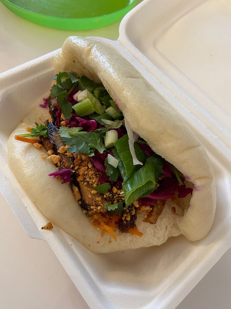 So allow me to introduce a few more drool-worthy dishes: my seafood spaghetti from Regency Restaurant, the brunch burger from Moksha Cafe, a pork bao from Earl’s and a little cinnamon bun from Flint Owl Bakery.