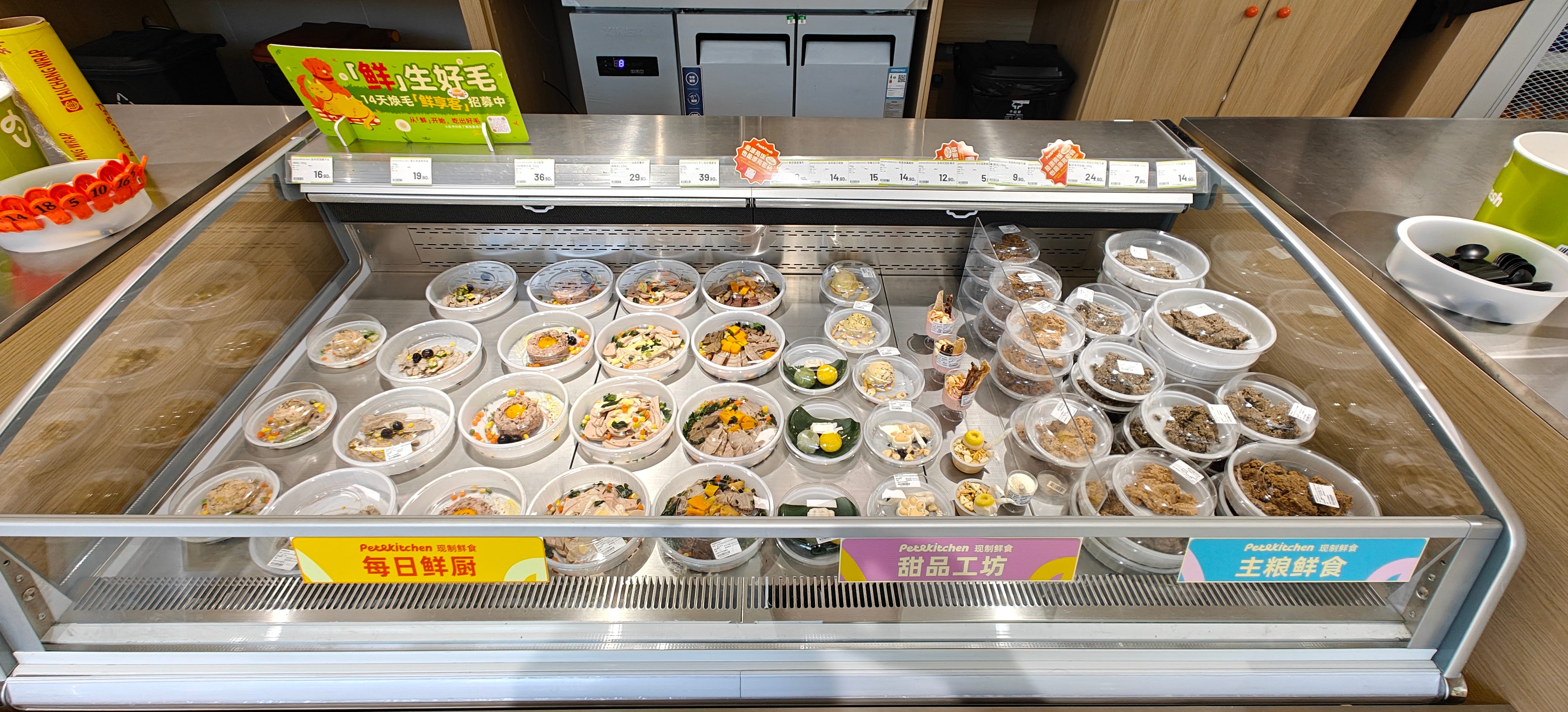 Pet Fresh copied this idea for pets (primarily dogs, it seems). You have a comparable 'buffet' where you can pick ingredients for your 'furry children' (as the Chinese call them) and have them prepared in the kitchen. Judging from many of the reviews on Dianping, the dogs are often not impressed. One customer described taking the dog meals home and noticed that other dogs in the neighbourhood also refused to eat it.