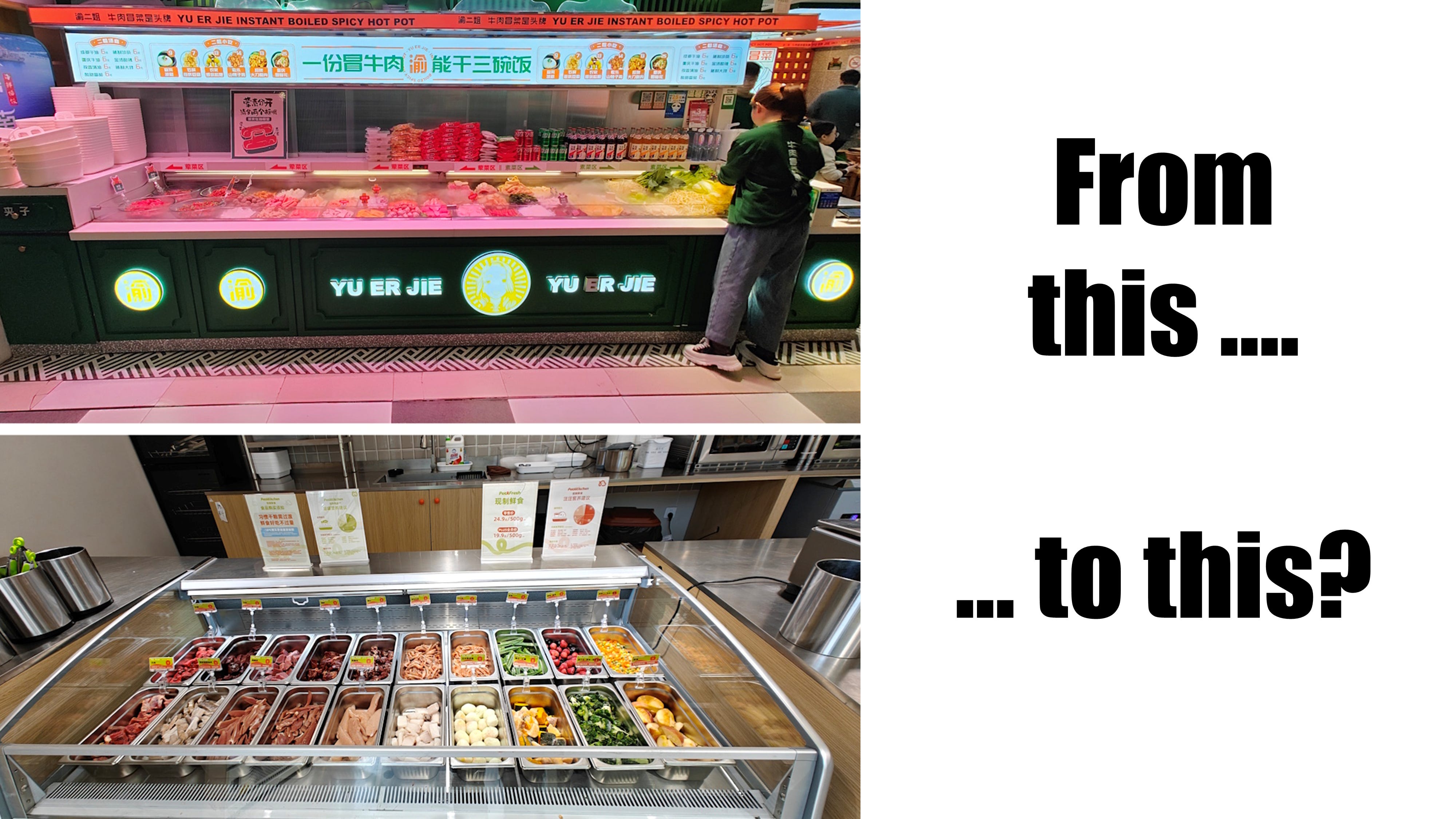 But one specific thing caught my attention: the 'Pet Kitchen'. Now, you have to know that in China, there is a popular catering concept in which you select different ingredients and have the restaurant stir-fry them for you with a sauce. You can see it in the top picture below.