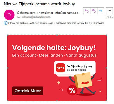 Previously, I mentioned that I would not be surprised if Ochama would rebrand to Joybuy. And it was just announced by e-mail to their clients (no mention whatsoever on their website or social media yet). On August 15th, the Ochama accounts will migrate to Joybuy.