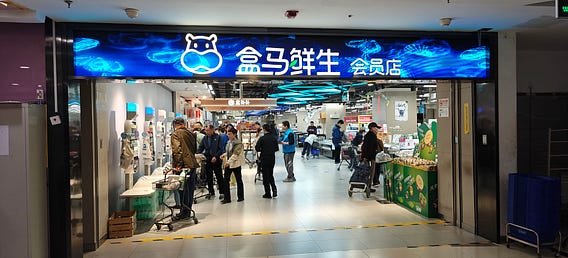 ▶️ Hema has approximately 900 stores nationwide, including about 500 Hema Fresh stores (an up-market format) and about 400 Chaohesuan/Hema NB stores (a community/discount supermarket format)