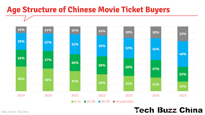 The cinema market has never fully recovered to pre-pandemic levels, and the average age of the moviegoers is increasing. In 2019, people younger than 30 accounted for 64% of all ticket buyers; that share has since decreased to 38%. Meanwhile, more than three-quarters of short video users are younger than 35.