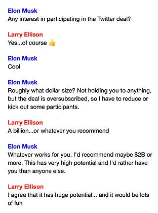 Elon Musk texts Larry Ellison
