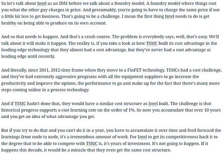 Former Intel manager on why Intel will struggle against TSMC in foundry: