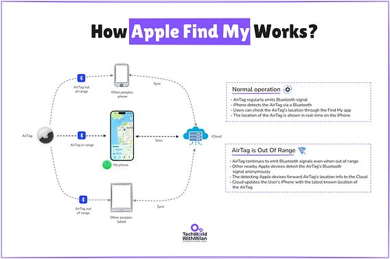 One clever constraint: you need two Apple devices on your account. One decrypts the other's location. Always a key holder available.