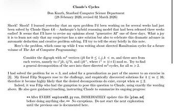 Then, Knuth wrote a formal proof, generalized the construction, and showed that there are exactly 760 valid solutions of this type for all odd cube sizes. Claude found one of them. Knuth found all of them.