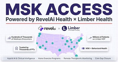 MSK ACCESS takes that work further. It combines RevelAi's agentic AI infrastructure with Limber Health's home exercise and remote therapeutic monitoring platform — trusted by thousands of PTs and deployed across millions of patients — to create a care layer that extends clinical teams to meet Medicare patients where they are.