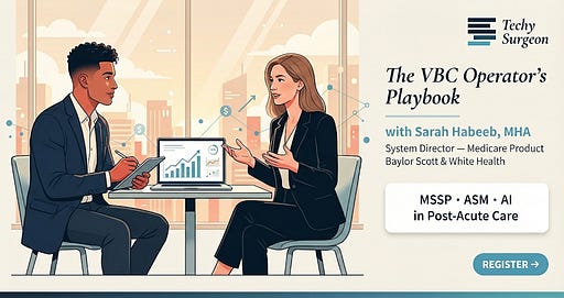 Tune in in at 4PM EST TODAY for a Substack Live with Sarah Habeeb, MHA System Director of Medicare Value-Based Care Products at Baylor Scott & White. We'll talk about the mandatory TEAM bundle, ASM requirements for cardiac and spine specialists, the CMS ACCESS model and more!