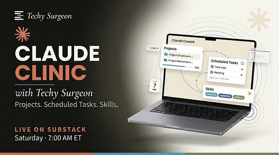 Tomorrow morning, 7 AM ET. Join Techy Surgeon Live on Substack for another edition of the Agentic Clinic!