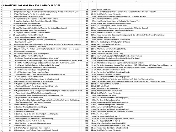 Before I started (back in 2021) I created a schedule for the entire first year. Then I started working on the individual articles.
