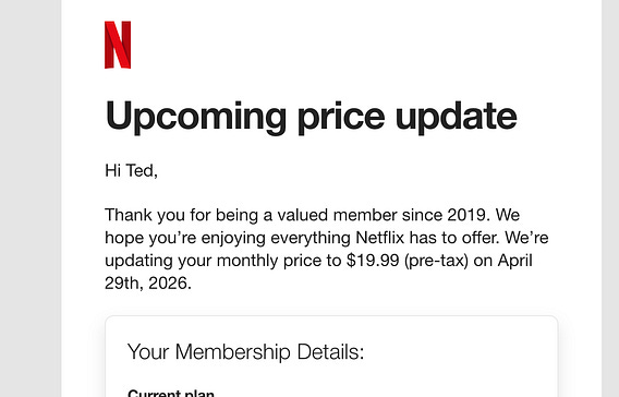 This makes me feel so much better. I heard Netflix was raising my subscription price (again). As it turns out, they are just updating it.