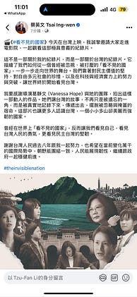 “🎬 “#TheInvisibleNation” premieres in Taiwan today, and I sincerely invite everyone to step into the theater and watch this deeply meaningful documentary.
