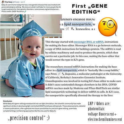 The genetic story is just a cover up and even Michael Levin is not allowed to talk about the usage of light and qdots directly. He always talks about using pseudocolours and soaked animals, ok- that is maybe possible, but when you grow a functional eye on a frogs butt, as he proclaims, you need precision control with light … and they even admit that it is being used in “CRISPR” gene editing but only “in the future” of course… the “future of medicine” is based on all of us being loaded with this stuff…