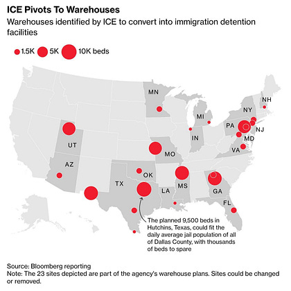 ICE has plans to "warehouse" more than 150,000 detainees in primarily red states. These are prisons, and there is a huge profit to be made from government contracts for Trump's buddies.