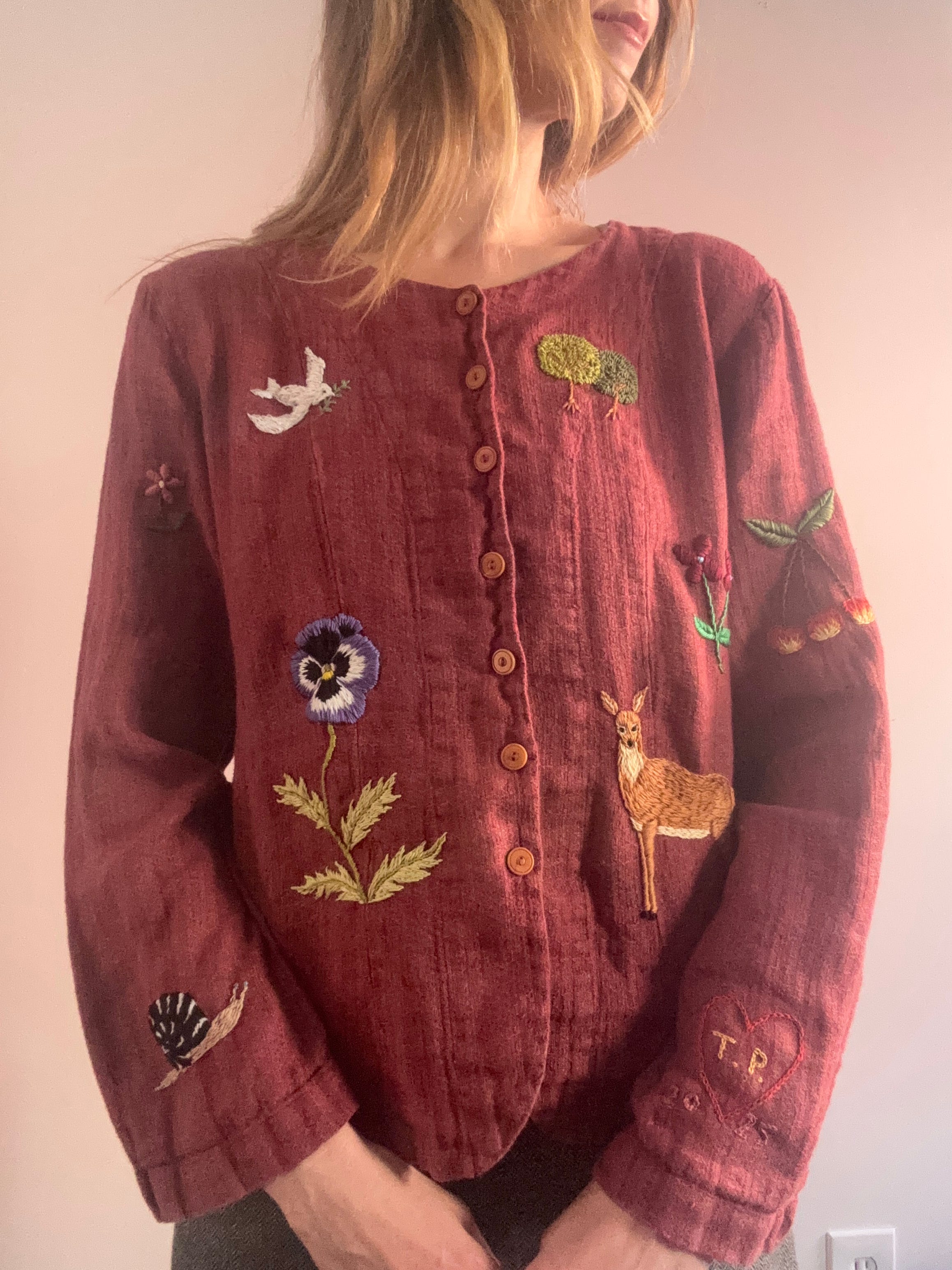 Upcycled linen shirt with hand embroidery all over 🪡