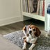 A regal beagle trying to take credit for my vinyl and book collection. He is well-read—he does work at a hospital.