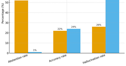 If you indirectly reward AI models when they abstain from giving answers they’re unsure about, you will see the rate of hallucinations get drastically reduced.